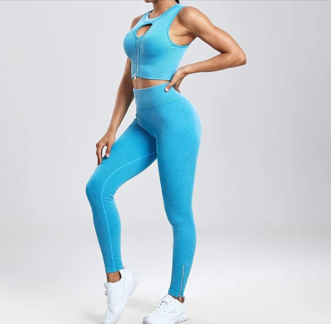 El conjunto caty cintura alta está diseñado con materiales de nailon y elastane calidad alta,y no solo esto,sino que es súper suave y muy cómodo y puede ser combinado para los entrenamientos en el gimnasio, como también para la calle.
